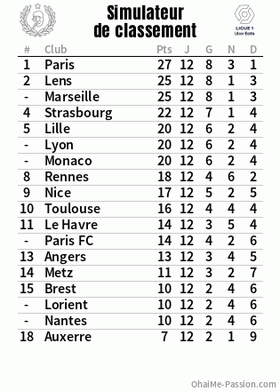 Simple à utiliser, à chacun de voir s'il faut mieux des nuls ou des victoires/défaites surtout sur le top 7 d'en bas nous concernant