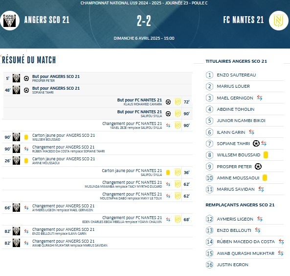 • Tours 0-2 SCO U19 ⚽4'⚽15'